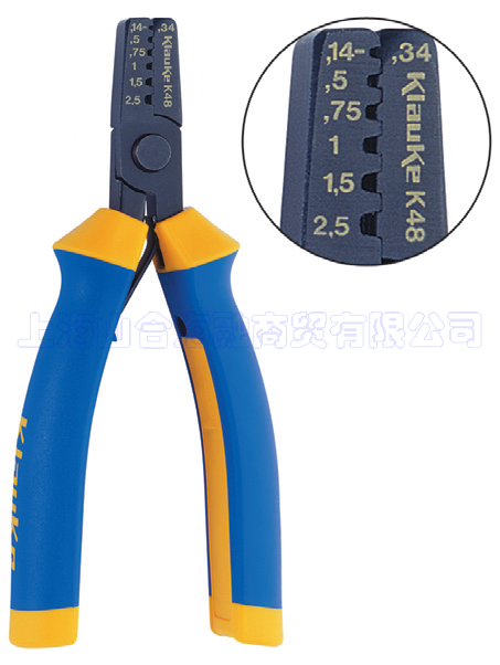 K48机械式压接钳用于0.14-2.5mm2 电缆终端管状端子的机械式压接工具适用于接线盒的梯形压接弹簧支撑工具开口K48特性每个压模对应一个线规侧向插入横截面JQ分配符合人体功学的手柄K48技术数据压接能力:0.14-2.5mm2长度:150mm重量:0.16 kg项目:用于0.14-2.5mm2 电缆终端管状端子的机械式压接工具K48附件:钢制携带箱SK30L