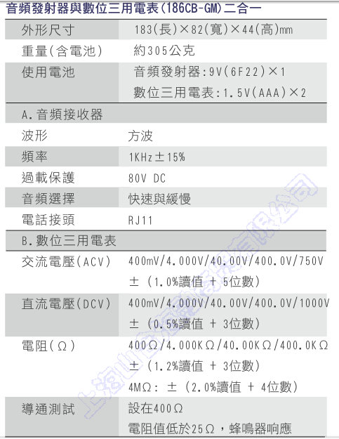 Amplifier Probe ; 1Hz ~ 12 kHZ, Tone Generator: 1 kHz +/- 15% |