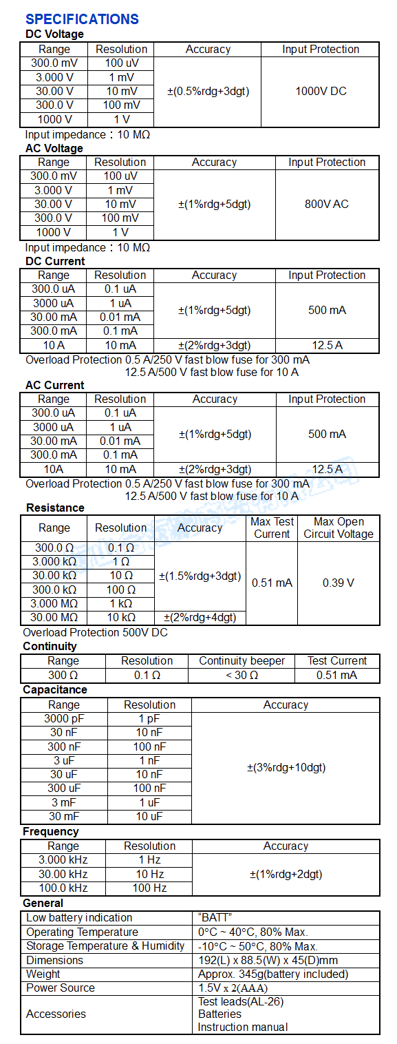 AC/DC voltage, current auto scanning. |
