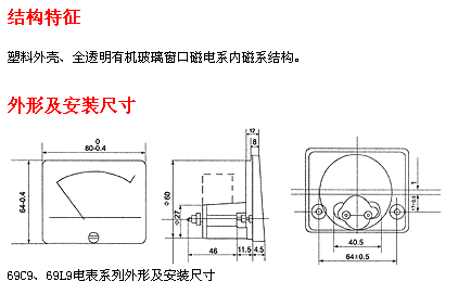 69C9、69L9电表系列A、V、W、COSφ、Hz型;85L17-A、69L17-A交流电流表