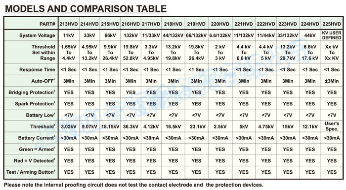 They can also be manually armed before use by depressing the "TEST/ARMING" button. These detectors are intended for use on sinusoidal (50 or 60Hz) High Voltage Systems.