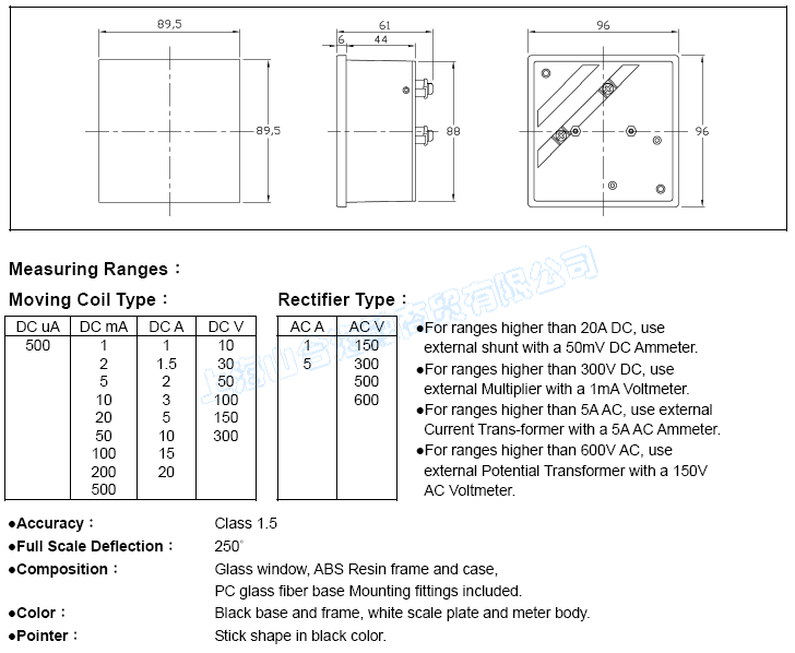 ● C過 600V AC規格,需要外附 150V AC 表頭的比壓器