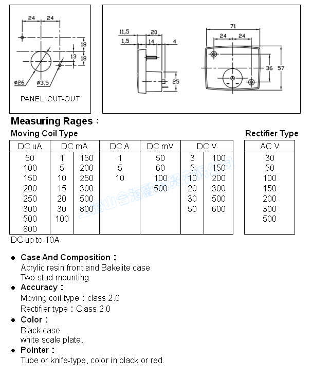 | 動圈軸心式 :2.0 級 / 鐵片型 : 2.5 級 / 動圈式整流型 :2.0 級 |