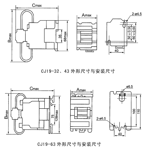 4、接触器安装可用螺钉紧固,也可扣装在35mm或75mm的标准安装轨道上。 |