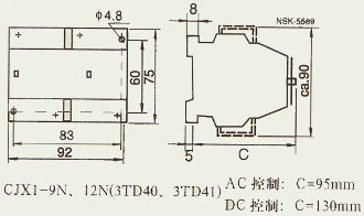 CJX1系列交流接触器适用于交流50Hz或60Hz,电压至于660V,额定电流至630A的电力线路中,供远距离和控制电动机接通与分断,接触器的控制电路有交流(AC)和直流(DC)二种。两台接触器加装机械联锁机构,组成可逆接触器,适合于电梯电路以及需要电气与机械双重联锁的电路。接触器可方便地与JRS系列热过载继电器对接组成电动机起动器。接触器的特性及安装尺寸等同于德国西门子公司生产的3TB、3TF、3TD接触器。 |
