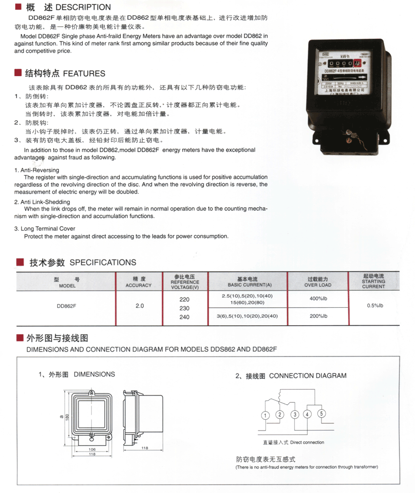 → DD862F型单相防窃电电度表
