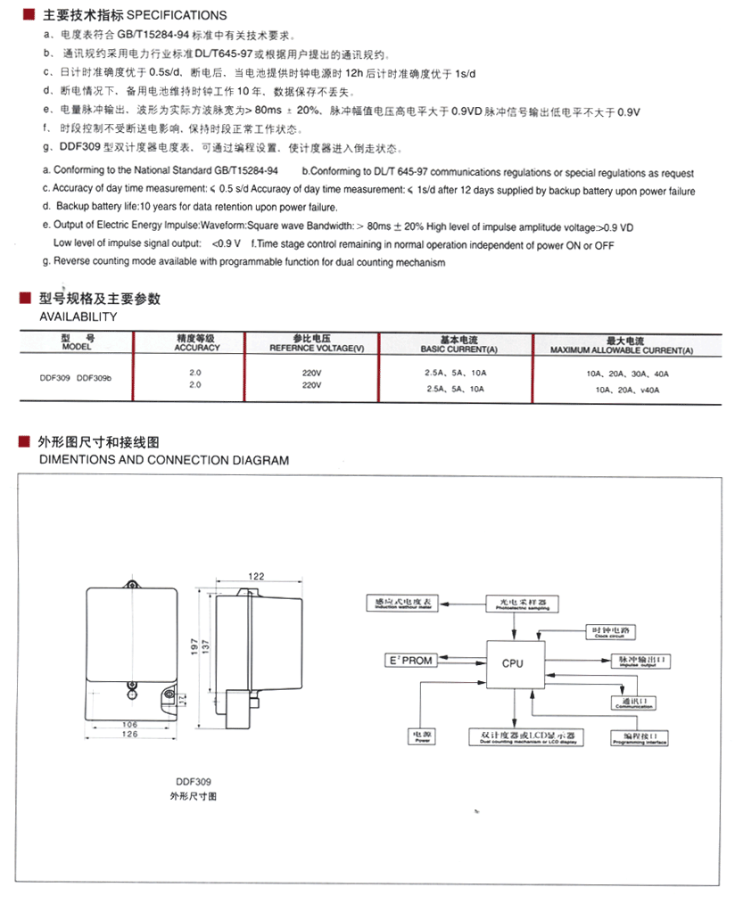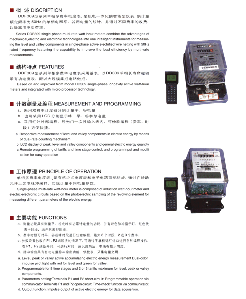→ DDF309系列单相复费率电度表
