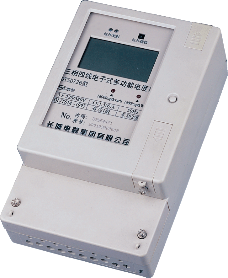 DTSD726三相四线电子式多功能电度表采用线性度好、KK性高的专用集成电路,应用表面贴装(SMT)技术设计而成,具有测量精度高、稳定性好、功耗低以及寿命长、过载性能高并具有良好的电磁兼容性等特点。可计量正反向有功、无功电能,并依据相应的费率和需量等要求进行数据处理。 电度表应固定安装在室内,环境温度-25℃~+55℃,相对湿度不C过85%,且空气中不含有足以引起腐蚀的有害物质。 本产品设有功能端子,可方便检测和通讯。