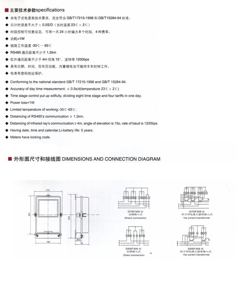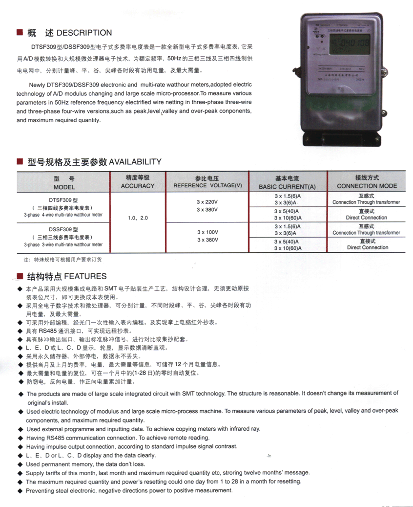 → DTSF309/DSSF309型三相四(三)线电子式多费率电度表