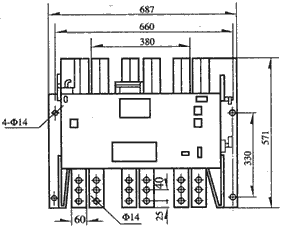 DW15-200、400、630万能式断路器 该断路器为立体布置形式,触头系统、快速电磁铁、左右侧板均安装在一块绝缘板上。上部装有灭弧系统,操作机构可装在正前方或右侧面。有“分”,“合”指示及手动断开按钮。其左上方装有分励脱扣器,背部装有与脱扣半轴相连的欠电压脱扣器。速饱和电流互感器或电流电压变换器套在下母线上。欠电压延时装置、热继电器或半导体脱扣器均可分别装在下方。
