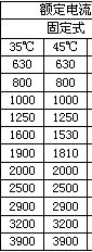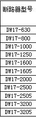 注:当断路器DW17(ME)-630/800/1000/1250型选用无过电流脱扣器时额定电流可分别提高到760/910/1200/1300A。
