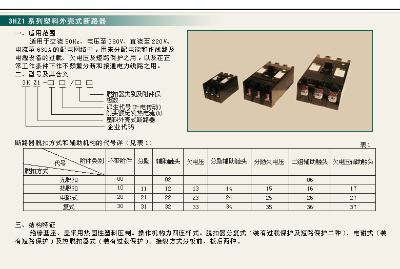 3HZ1(DZ10)系列塑料外壳式断路器