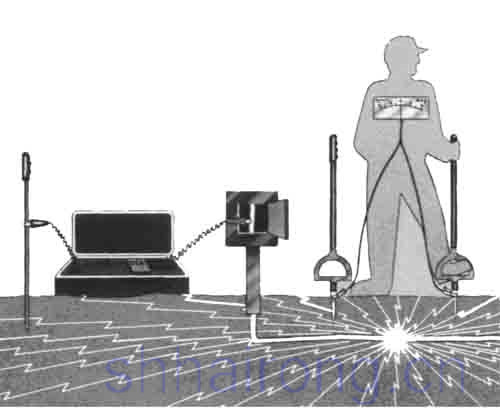 检测器:过滤电路不需要的地面电流(这种电流根据环境的不同变化很大)。因此故障电流可以被放大到远远C过以前的极限,而不受干扰信号的阻碍。这一点在干燥的场地上十分有用。当故障位于两个探针中间时,检测器读数为零。当探针位于故障同一侧时,针尖指向故障。操作员只需带着探针走过故障,这使得它可以JQ定位故障。