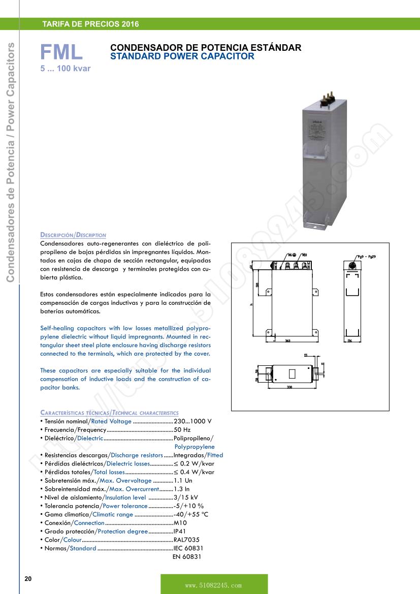 FML 5 ... 100 kvar STANDARD PRISMATIC CAPACITOR
