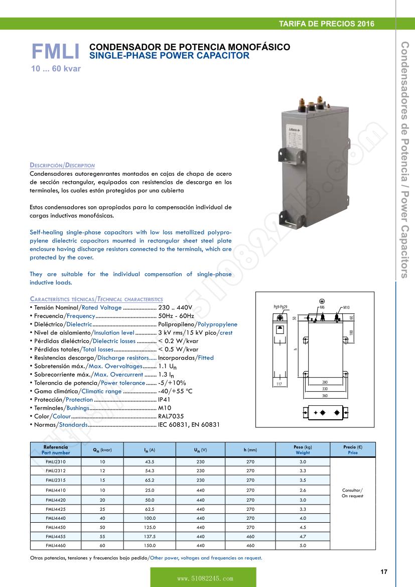 P¨¦rdidas diel¨¦ctrico/Dielectric losses ............. < 0.2 W/kvar