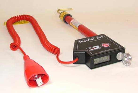The DVM-25T is a compact, high accuracy single stick voltmeter with capacitive test point mode and ground lead.  The DVM-25T measures voltages up to 25kV and can be used in both overhead and underground applications.