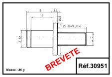 13.5mm具有锥度的不锈钢衬筒,包含有锥度孔以及接触钢轨的翼缘. -一个具有M10螺牙以及锥度的不锈钢螺杆. -一个防松动的M10螺帽,包含压接成型的 27mm不锈钢垫圈(*) -一个直径 27mm抗磨擦的垫圈 SNCF使用的电气膨胀螺丝使用具有比较大平面的铜衬筒 (*)当使用标准的铜端子可以使用 22mm的尺寸 |