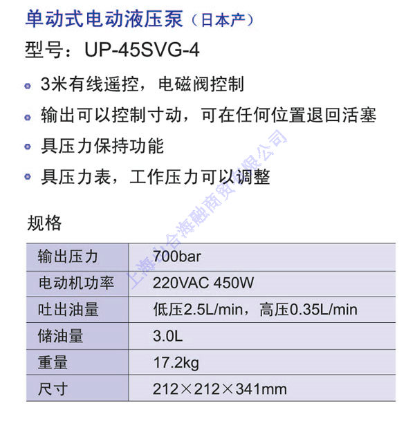 UP-45SVG-4单动式电动液压泵(日制)