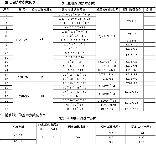 JR28系列热过载继电器用于交流50Hz,额定绝缘电压660V,电流0.1A ~ 93A的电路中,主要用于三相交流电动机的过载和断相保护。并可与适应的交流接触器组成起动器。