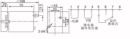 2. 对脉动型继电器,延时范围是指“接通时间”与“开断时间”的调整范围,它们都可在这个范围内分别调整。