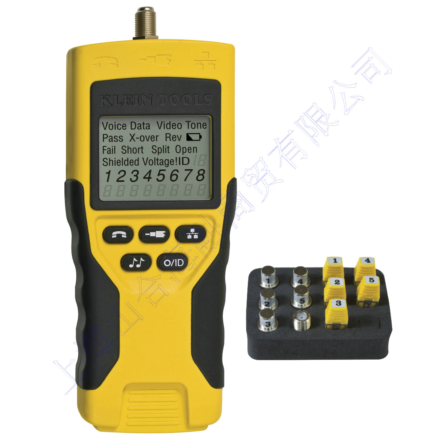 能测试数据(RJ45),音频(RJ11/12)和视频(F-同轴电缆接头)电缆的连通性。