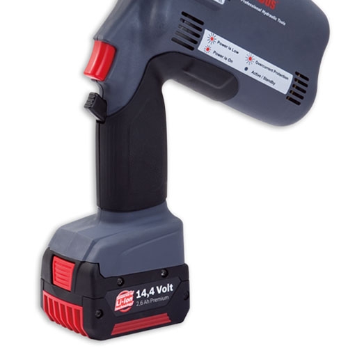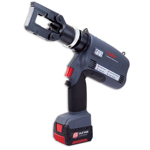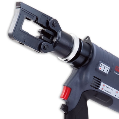 型号.LEC-240T • Z大压接能力: 240 mm²铜端子 • 何使用 Alcoa ,Burndy,T&B,Klauke,Cembre及 Blackburn 等 • 高度: 360 mm • 动力: 14.4V DC 马达 • 输入电压: 230V AC 单相 • 输入电流: 21.75 VA • 储油量: 120 cc • 具有安全阀可确保压接质量 • 压接头采用扣钩式可容易更换模具以及压接套管 • 本体具残余电量显示及故障显示灯号 • 防滑握柄,双层机壳坚固耐用