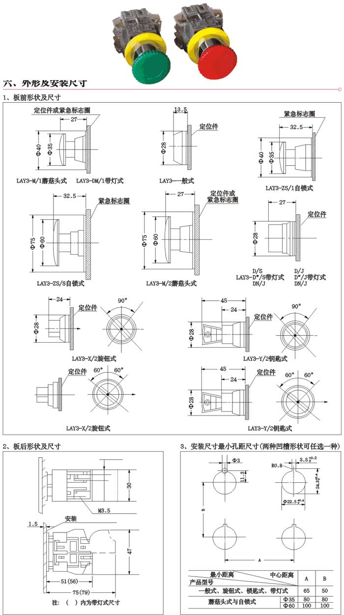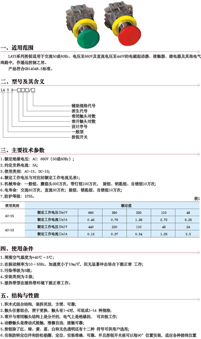 5 机械寿命:一般钮、蘑菇头钮300万次,带灯钮100万次,旋钮、钥匙钮、自锁钮10万次;