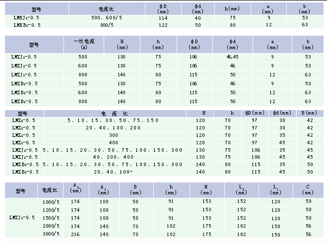 LMZ1-0.5、LMK1-0.5、LMZJ1-0.5、LMKJ1-0.5、LMZB1-0.5、LMKB1-0.5型电流互感器