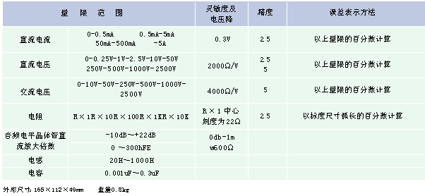 MF47型是一种高灵敏度便携式万用电表,结构新颖,性能优良,测量范围宽广,可测量直流电流、直流电压,交流电压和直流电阻等,具有26个基本量程和电平、电容、电感、晶体管直流参数7个附加参考量程,是量限多分栏细、体积轻巧,性能稳定,读数清晰,使用方便,表中设置了二极管和熔断丝双重保护装置,它是从事无线电、电讯、电视机、音频放大器电子设备的电工测试、工厂、实验室、维修的专业人员及业余爱好者的理想测试仪表。