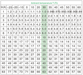 ■In relevant temperature and n switches working state allowed load: IDL=InKT (T)KN (N)