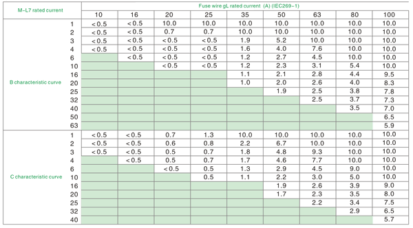 d.short circuit breaking capacity: maximum 48V(M-L7…,10kA) single pole