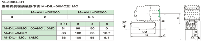 M-Z00C系列热继电器用于交流50/60Hz,电压至660V,电流至93A及以下的电路中,供交流电动机热保护作用,并且有差动机构和温度补偿环节,可与 M-DIL 交流接触器配装,也可独立安装。