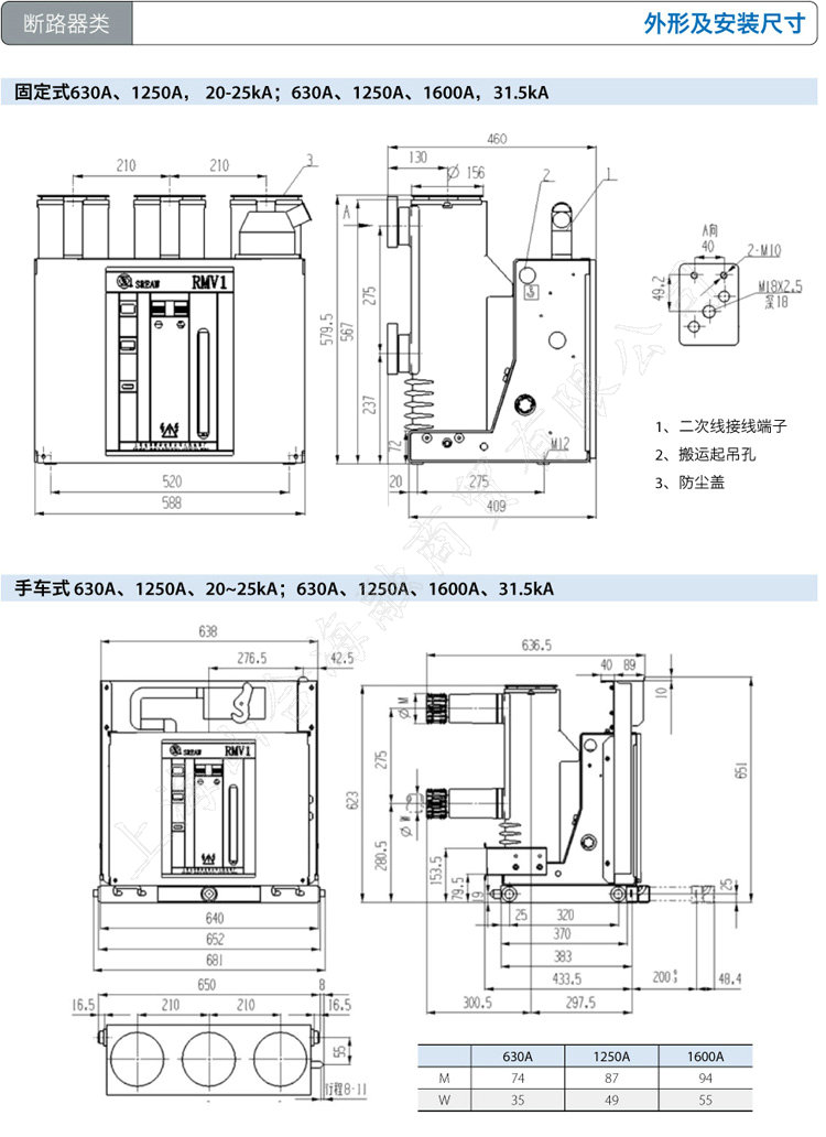 3) RMV1为该系列断路器企业代号,同时还有西高所行业型号相对应,其中非固封式对应