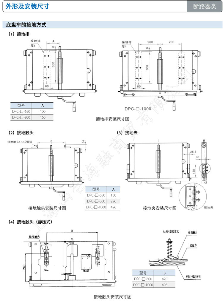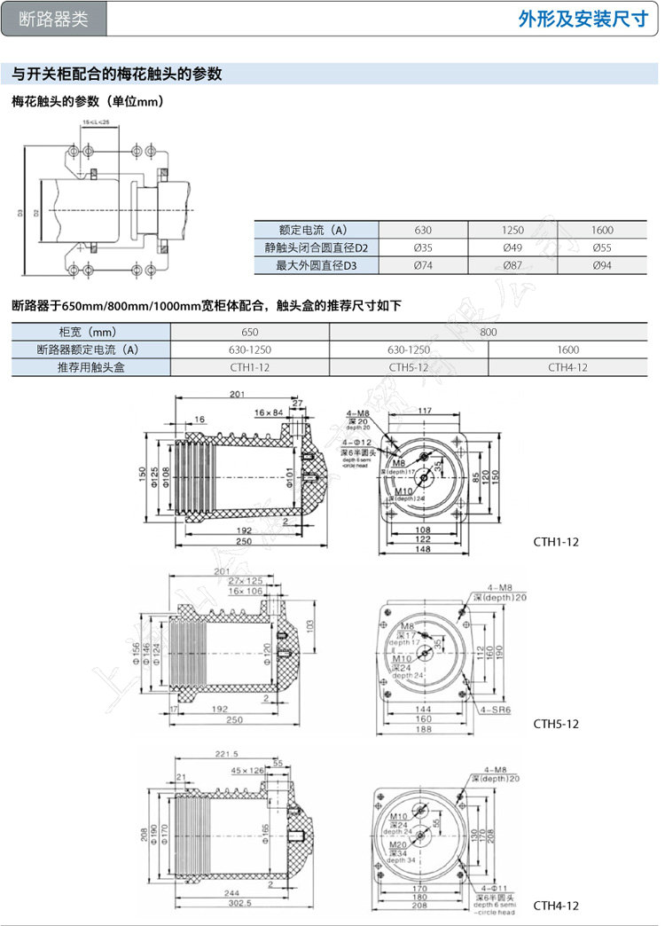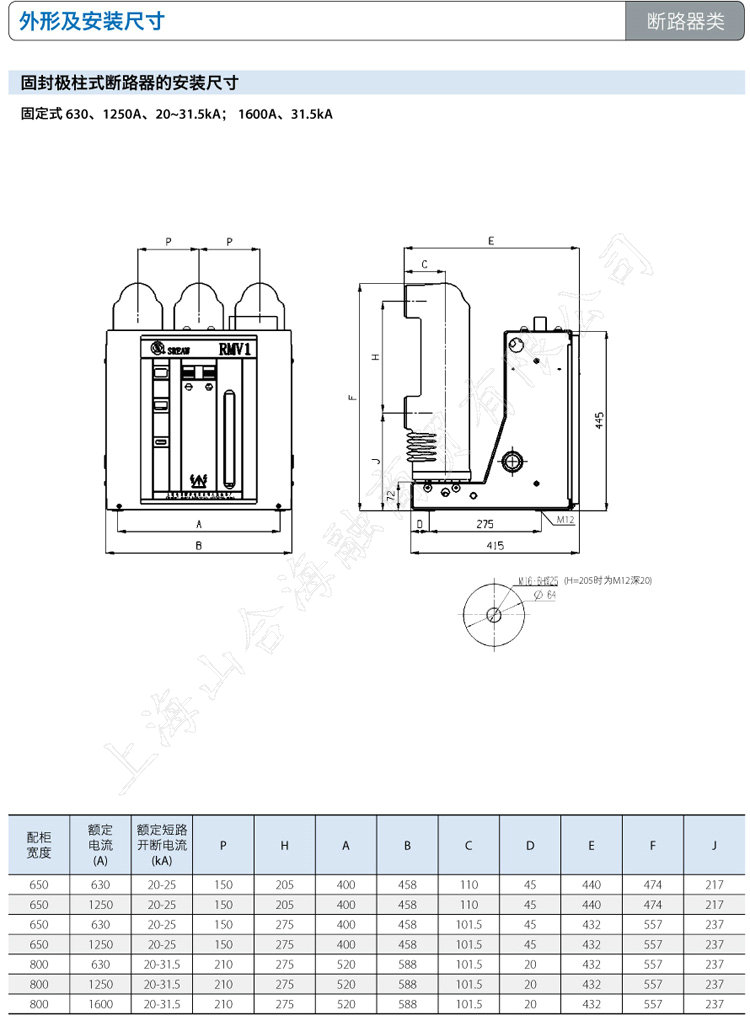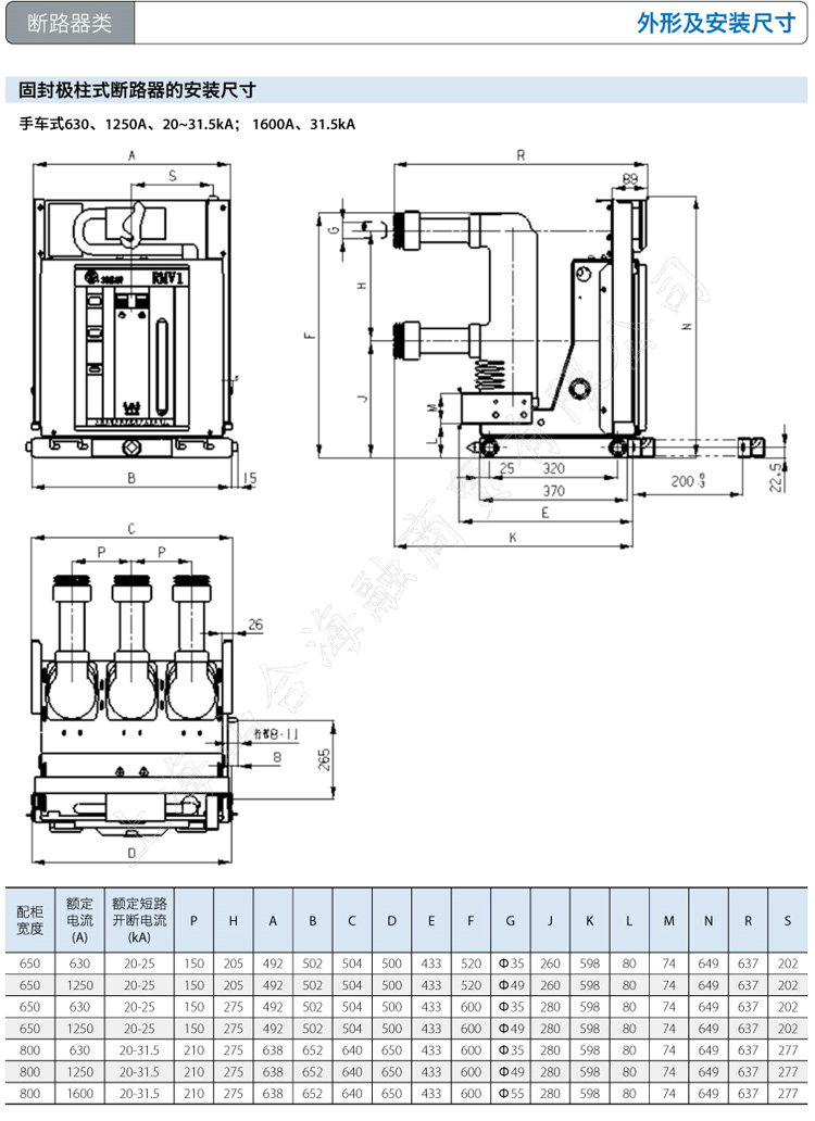 当额定电流为1250A以下,开断电流为31.5kA以下。相距为150或210可选。