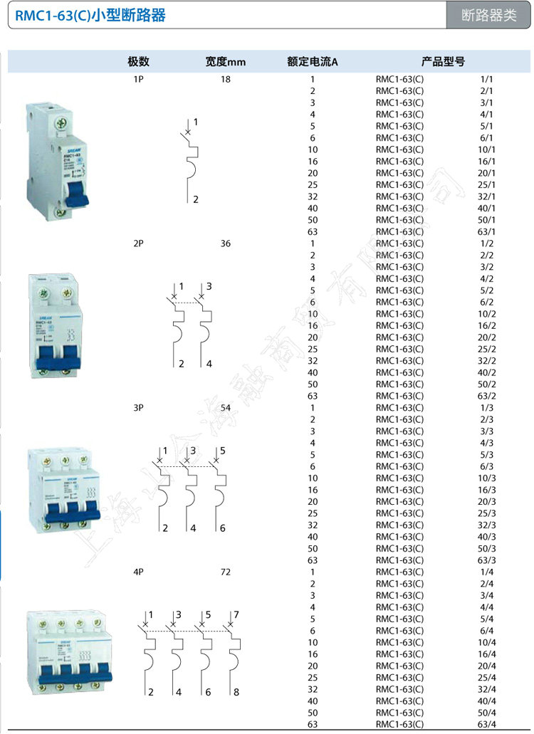 脱扣特性 C型5~10In瞬时脱扣 50、63 230/400 4.5