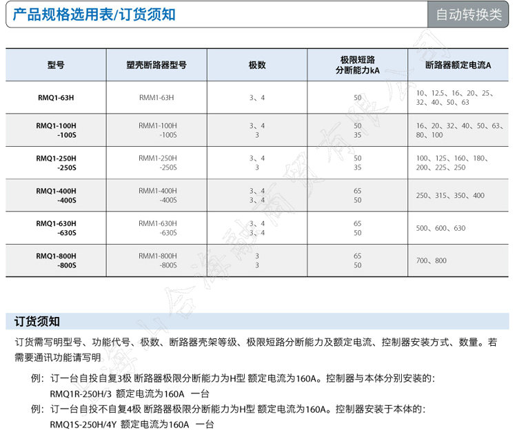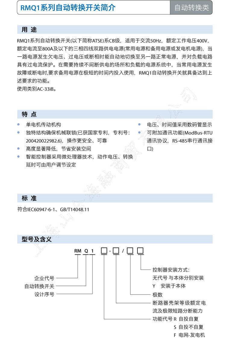 RMQ1系列自动转换开关(以下简称ATSE)系CB级,适用于交流50Hz,额定工作电压400V,