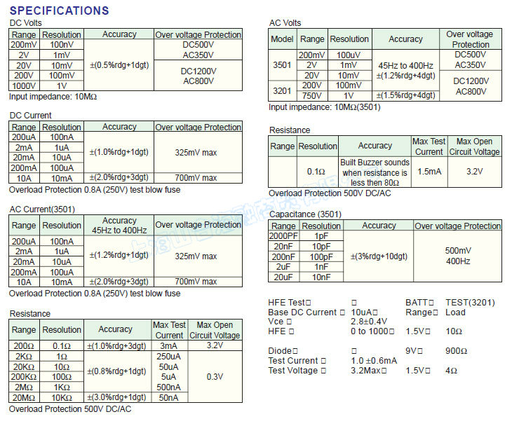 Display: 3-1/2 digit liquid crystal display (LCD) with max. reading of 1999. |
